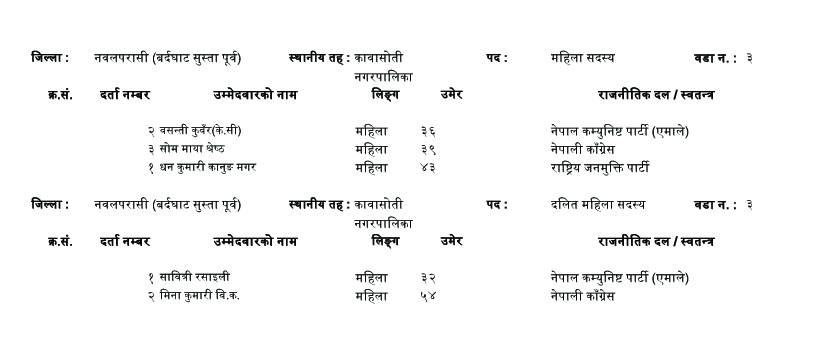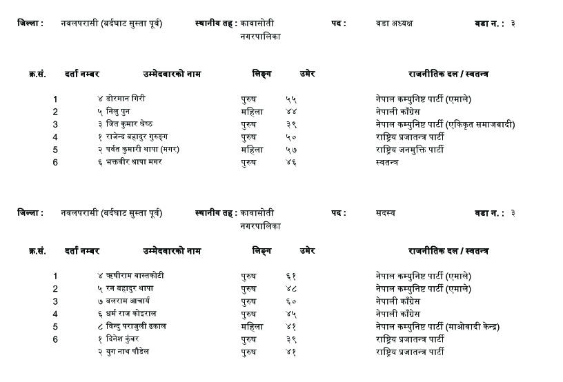 कावासाेती ३ मा ६ जना वडाध्यक्ष उम्मेद्वार