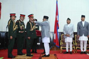 काठमाडौं । नवनियुक्त प्रधानसेनापति महारथी अशोकराज सिग्देललाई दर्ज्यानी चिह्न प्रदान गरिएको छ ।