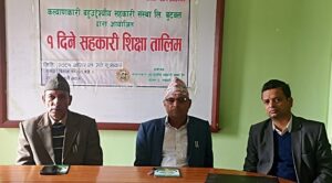 यसरी सहकारीका पदाधिकारी , कर्मचारी तथा सदस्यहरु प्रशिक्षित भइ कार्यक्षमता अभिबृद्धि गरेमात्र संस्था संचालनमा सहजता आउंछ र सहकारी क्षेत्रको भविश्य उज्वल हुने कल्याणकारी बहुउद्देश्यीय सहकारीका उपाध्यक्ष डोल प्रसाद पाण्डेले बताउनु भयो ।