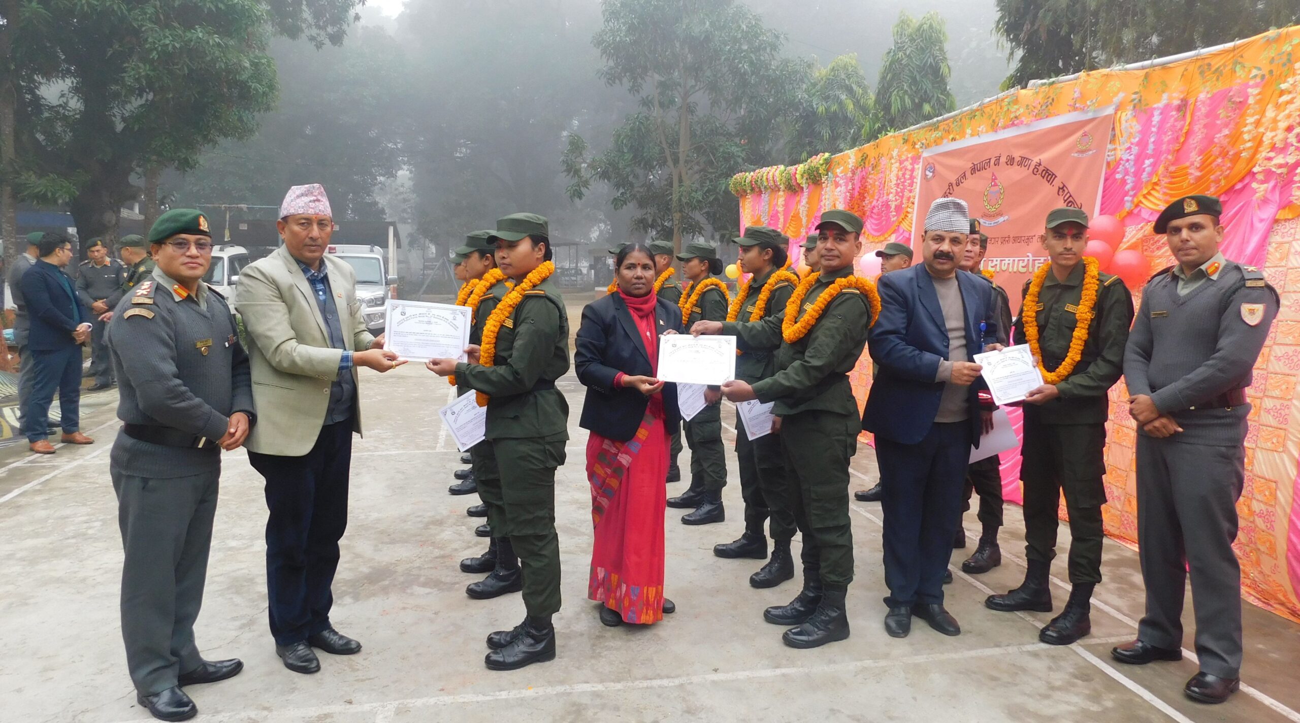 सशस्त्र प्रहरी बल नम्बर २७ गण हेडक्वाटर रुपन्देहीमा विगत एक महिना देखि आधारभूत तालिम लिएका नगर प्रहरीलाई तालिमको समापन संगै दीक्षीत गरिएको हो ।