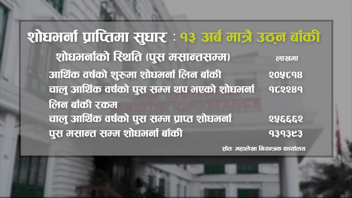 शोधभर्ना प्राप्तिमा सुधार : १३ अर्ब मात्रै उठ्न बाँकी