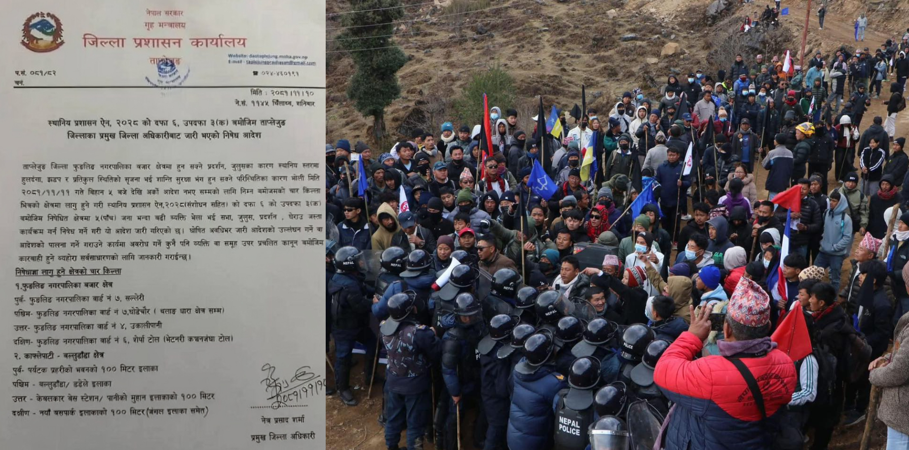 निषेधित क्षेत्रमा फुङलिङ नगरपालिका वार्ड नं ७ को सल्लेरीदेखि घोडेचौरसम्म, वार्ड नं ४ को उकालीपानी, वार्ड नं ६ को शेर्पा टोल, काफ्लेपाटी-बल्लुडाँडा क्षेत्र, पर्यटक प्रहरी भवन वरपरको १०० मिटर क्षेत्र, नयाँ बसपार्क वरपरको १०० मिटर क्षेत्र, केबलकार बेस स्टेसनदेखि पानीको मुहानसम्मको १०० मिटर इलाका तथा बल्लुडाँडा-डडेले इलाकासमेत समावेश गरिएको छ । प्रशासनले निषेधाज्ञा उल्लंघन गर्नेलाई कडा कारबाही गरिने चेतावनी दिएको छ ।