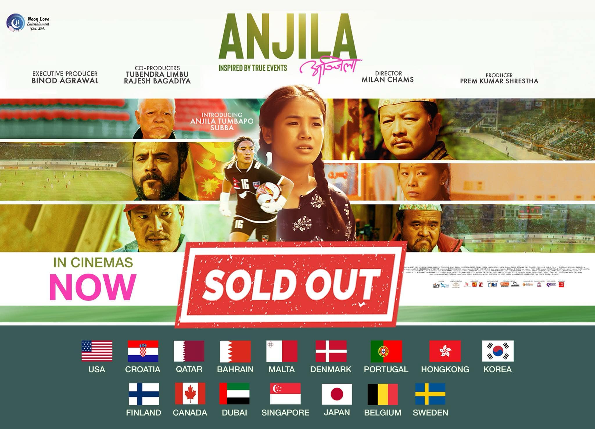 यस वर्षको फागु पूर्णिमाको दिन फागुन २९ गते नेपालमा प्रदर्शन भएको यस चलचित्रले नेपालमा सुपरहिट भएपश्चात् नेपालीहरूको बाहुल्य रहेका विभिन्न मुलुकहरूमा रिलिज हुन लागेको हो । ‘अञ्जिला’ ले समीक्षक तथा दर्शकबाट सकारात्मक प्रतिक्रिया पाउनुका साथै उल्लेखनीय व्यापार गरेपछि विदेशबाट माग भएको थियो ।