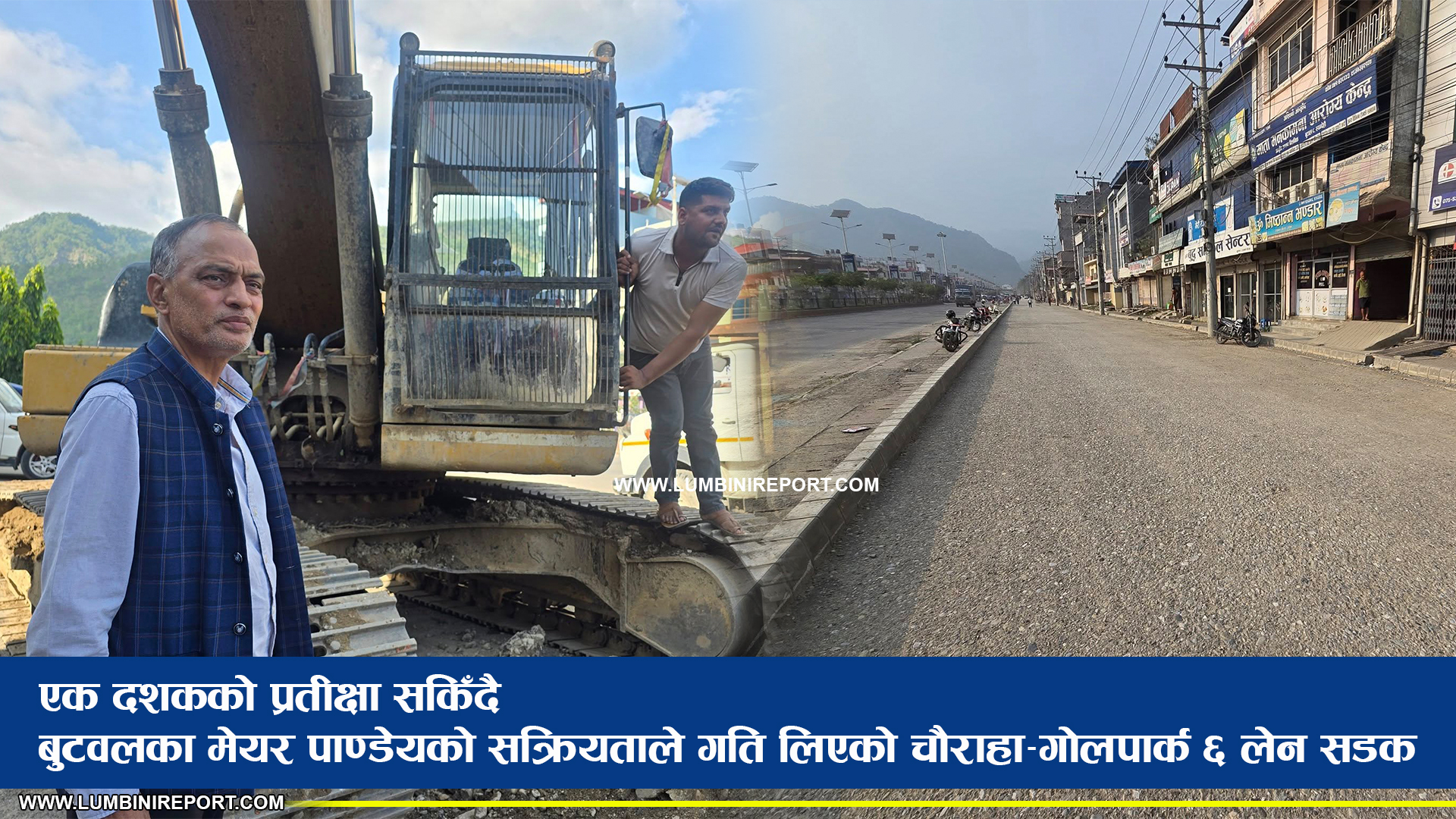 बुटवल । एक दशकदेखि अधुरो, विवादास्पद र जनगुनासोको विषय बनेको बुटवल–बेलहिया व्यापारिक मार्ग आयोजनाको ३ किलोमिटर खण्ड अर्थात् बुटवल चौराहा–गोलपार्क ६ लेन सडक अन्ततः सम्पन्नताको नजिक पुगेको छ।यस निर्माण कार्यलाई गतिशील बनाउन निर्णायक भूमिका खेलेका छन् बुटवल उपमहानगरपालिकाका मेयर खेलराज पाण्डेय, जसको निरन्तर पहल, समन्वय र दवावका कारण यो बहुप्रतीक्षित सडक विस्तार कार्य अन्तिम चरणमा पुगेको छ। यस सडक खण्ड ‘बुटवल–बलहिया व्यापारिक मार्ग आयोजना’ अन्तर्गत पर्ने अत्यन्त महत्वपूर्ण खण्ड हो, जसले बुटवलको मुख्य चोक चौराहा हुँदै गोलपार्क जोड्ने गर्दछ ।
