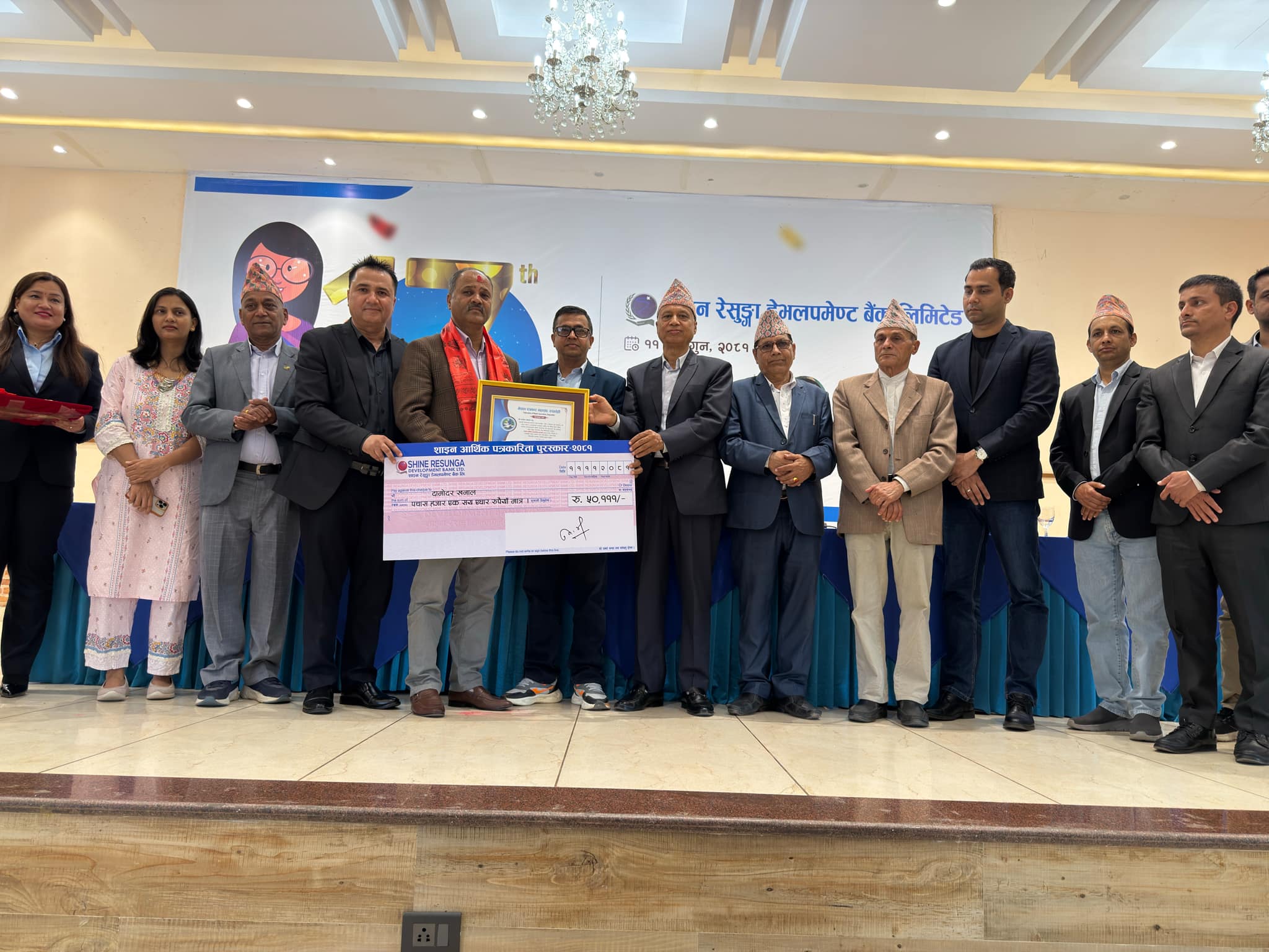 शाइन रेसुङ्गा बैङ्क १७ वर्षमा प्रवेश ,“शाईन आर्थिक पत्रकारीता पुरस्कार” बाट खनाल पुरस्कृत